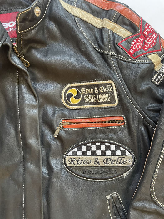 A leather jacket with racing patches in a motorcycle style typically features a rugged design inspired by biker aesthetics. It’s crafted from leather, adorned with racing-themed patches and details, and is known for its edgy and rebellious look. This style of jacket is often associated with the world of motorcycle riding and carries a sense of adventure and attitude.