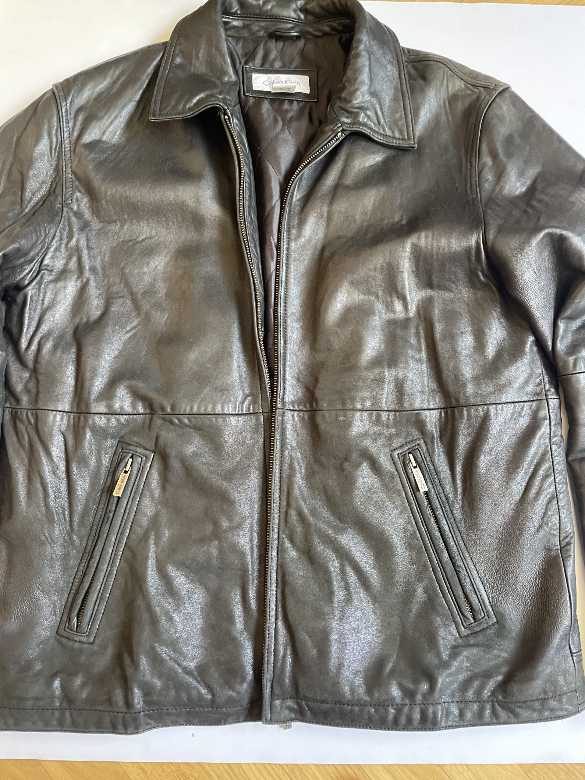 This Calvin Klein straight leather jacket stands as a pinnacle of craftsmanship and sophistication, boasting the absolute finest quality leather I have ever had the privilege of witnessing. Its impeccable design and premium materials combine to create a garment that not only showcases the renowned Calvin Klein style but also sets a new standard for luxury and elegance in leather outerwear.