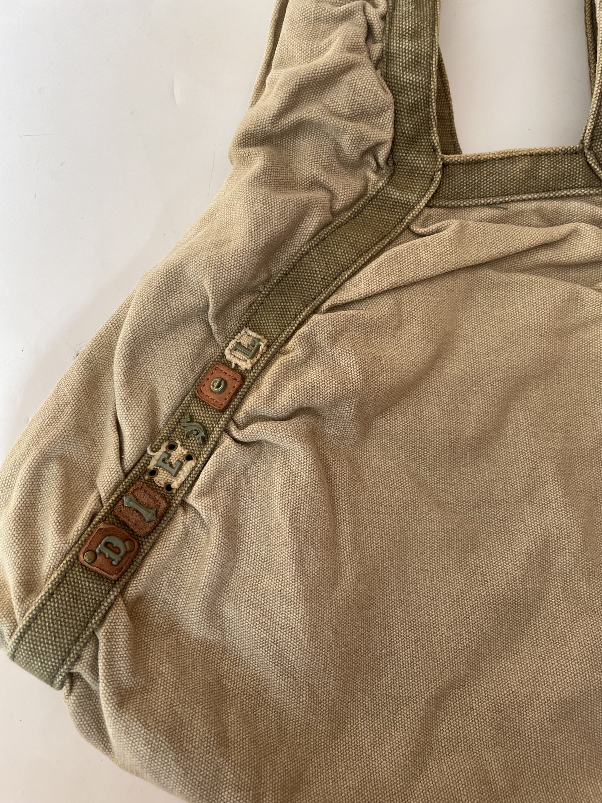 A Diesel beige cloth tote bag, offering a stylish and practical accessory for various everyday occasions with its neutral and versatile color.